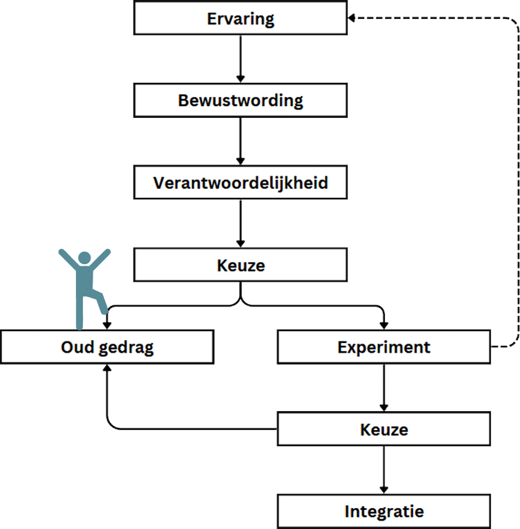 Na het doen en reflecteren, leggen we verbanden. We koppelen onze inzichten aan onderbouwde modellen en brengen die direct weer in praktijk. Zo doorlopen we stap voor stap de leercyclus van Kolb: ervaren, reflecteren, begrijpen, experimenteren.